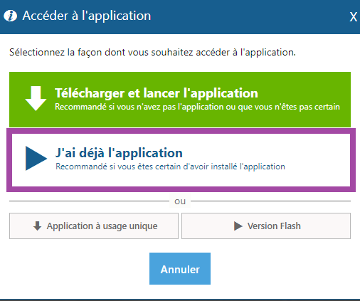 3- Après l’installation de votre application VIA, cliquez sur j’ai déjà l’application